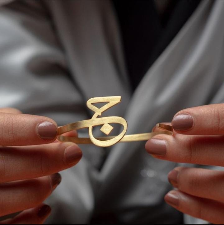 Elegant and stylish gold-plated bracelet featuring a beautifully crafted Arabic name design. A perfect personalized accessory or thoughtful gift for any occasion