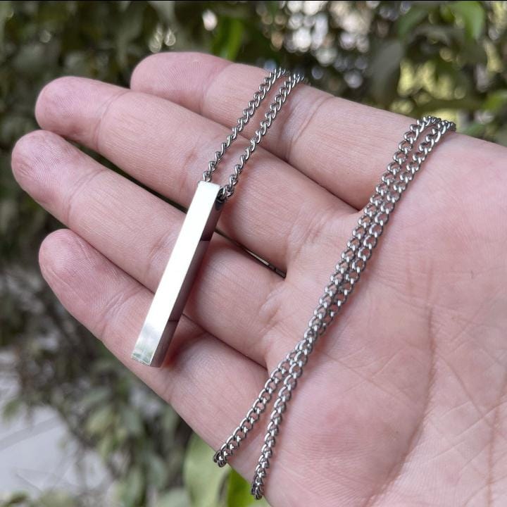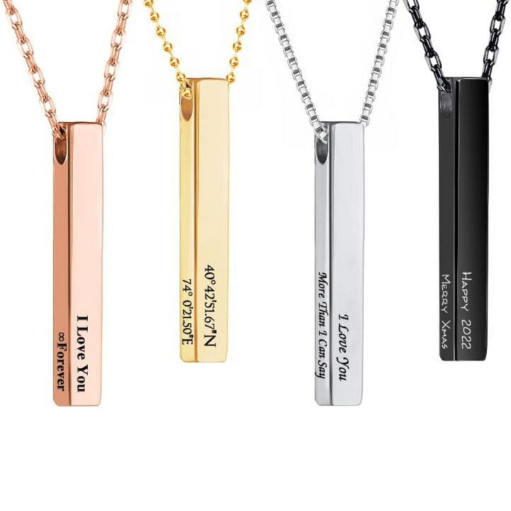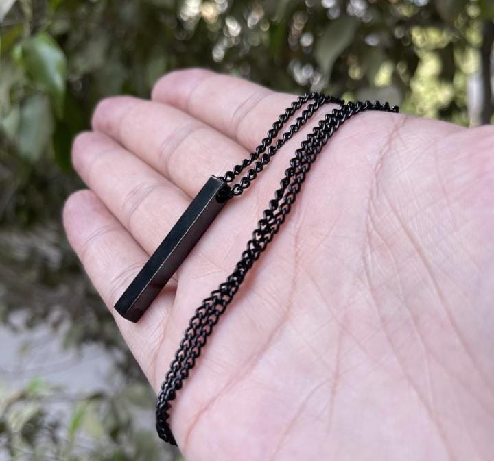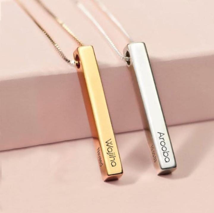 Personalized Engraved Bar Pendant Necklace – a sleek and stylish accessory customized with your name or a special message. Made from high-quality materials, perfect for everyday wear or as a thoughtful gift