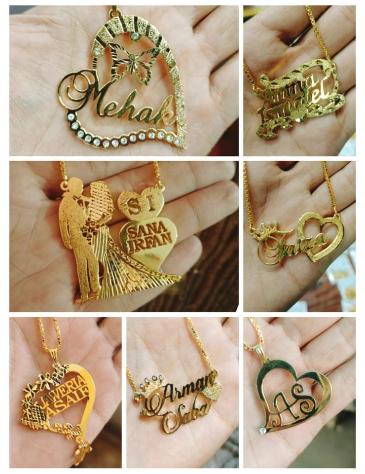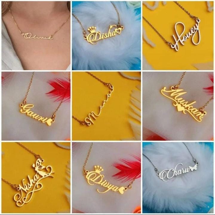 Custom gold and silver name necklaces with elegant designs. A perfect gift for your loved ones!